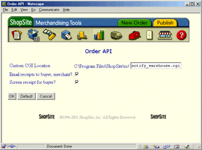The ShopSite Orders API allows advanced users to customize the order process by writing scripts to meet specific needs. Users have written scripts which hook into custom payment processors, such as the Royal Bank of Canada, or to give access to digital downloads.