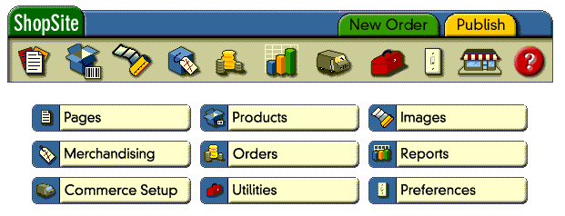 Your view of the store as a seller is quite different. Although your store is made up of pages, and there are products for sale on those pages, you don't have to edit the store pages directly, and you don't even have to know how to make a Web site or page. You access the ShopSite seller interface with your favorite browser, and add products and pages to your store's database by clicking on buttons and filling in fields. Don't let the word "database" scare you - you never even see anything that looks like a database!