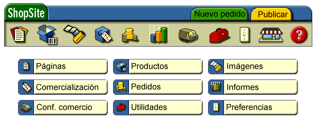 Su visión de la tienda como vendedor será bastante distinta. Aunque su tienda está formada por páginas y hay productos a la venta en dichas páginas, no es preciso que edite las páginas de la tienda directamente; ni siquiera tiene que saber cómo crear un sitio o una página Web. El acceso a la interfaz de vendedor de ShopSite se realiza mediante un navegador; para agregar productos y páginas a la base de datos de la tienda, sólo tendrá que hacer clic en diversos botones y rellenar campos de datos. No se asuste por la palabra "base de datos" ¡nunca verá nada que se parezca a una base de datos.!