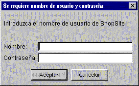 Para iniciar una sesión con ShopSite, utilice su navegador favorito para ir al URL de ShopSite. Aparecerá una pequeña ventana en la que se le pedirá su nombre y su contraseña, datos que usted seleccionó como parte de los trámites formalizados con el servicio host.