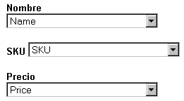 - Aparecerá una pantalla con todos los elementos del primer registro de la base de datos, junto con un menú desplegable para cada campo. Seleccione en el menú desplegable el campo de ShopSite que corresponda a cada campo de su base de datos.