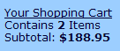 - The Subtotal format displays a small cart graphic, the number of items in the cart, and the subtotal for the order, all on one line. The graphic and the text are both links to the shopping cart.