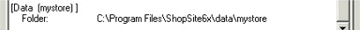 - Data - Identifies the path of the folder containing the databases for the store currently being installed. Each store must have its own folder for data files. This folder must not be under the Web server's document root folder and it must not be accessible via a browser.