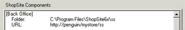 - Back Office - Identifies the path and URL of the folder containing the programs for creating and managing Shopsite stores. Each store can have its own Back Office folder, or multiple stores can share one folder.