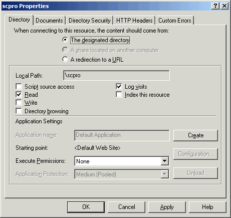 This table summarizes the IIS settings for ShopSite virtual directories: