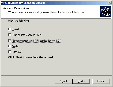 - On the next Wizard screen, check the Execute box. Do not check any of the other boxes for access permissions.