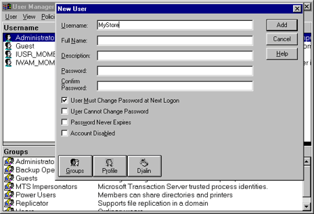 Create a Merchant User Account in Windows NT