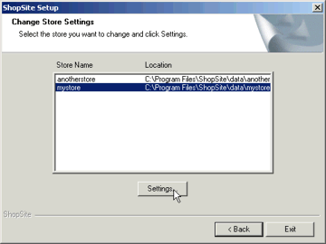 - On the Change Store Settings screen, highlight the store and click the Settings button.